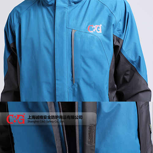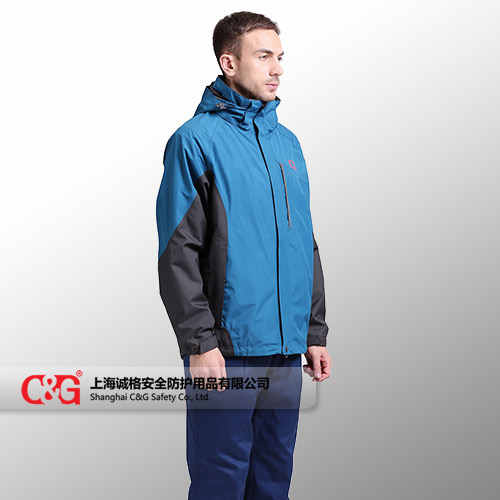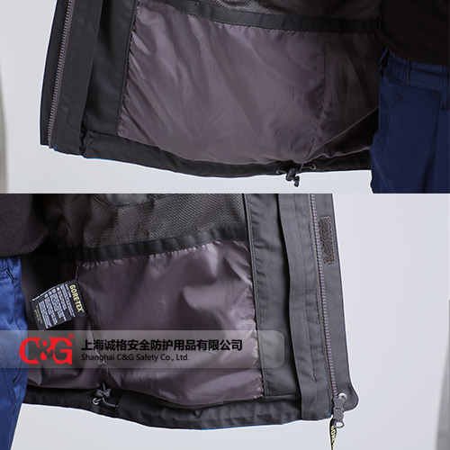 衝鋒衣 CG-CFF804采用符合塗層防水透氣麵料製作(zuò),防水指數5000以上,可防中大雨;接縫全部采用壓膠防水拉(lā)鏈;內膽采用高效保暖羽絨棉,可單獨穿(chuān)著;風帽可拆卸。