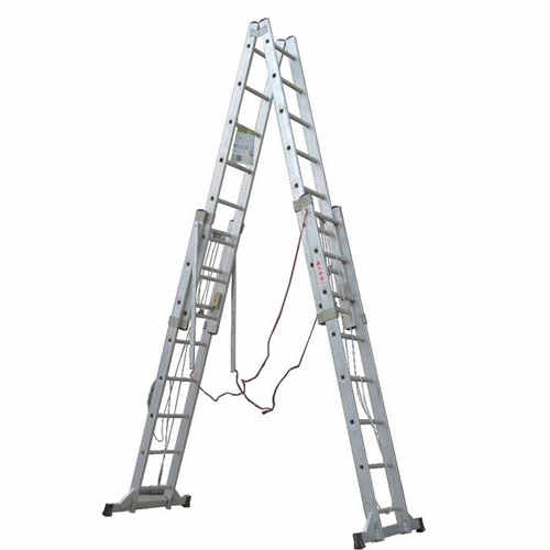 5、要降下梯(tī)子,把梯子兩邊收攏靠近一(yī)些,然後解開固定的繩索,把梯子上升一(yī)點,使固定卡子離開踏階麵,然後緩慢(màn)下降。如若下降不順暢,可一(yī)手握(wò)著(zhe)繩索,一手輕輕前後搖晃梯子,直至梯子(zǐ)順(shùn)暢下降。