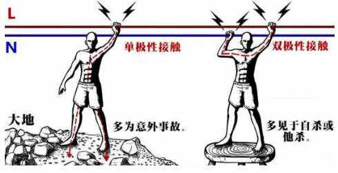 雙極性接觸觸電:即人體同時接(jiē)觸火線與零線,形成回路,而(ér)無需經過大地,所以(yǐ)此時絕緣鞋不起作用,這種觸電情況多為自殺或他殺,發生機率很(hěn)小。