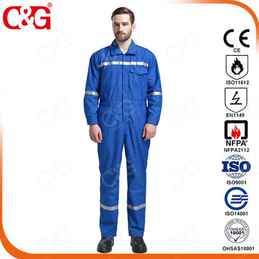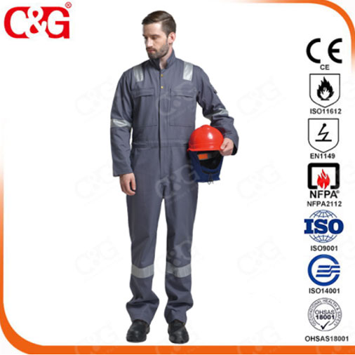 阻燃服(fú)采用阻燃麵料,其麵料中阻燃纖(xiān)維使纖維的燃燒速度大大減慢,在火源移開後馬上自行熄滅,而(ér)且燃燒部分迅(xùn)速炭化而不產生(shēng)熔融、滴落或穿洞,給人時(shí)間撤離燃(rán)燒現場或脫掉身上燃燒的衣服,減少或避免燒傷燙傷,達到保護的目的。