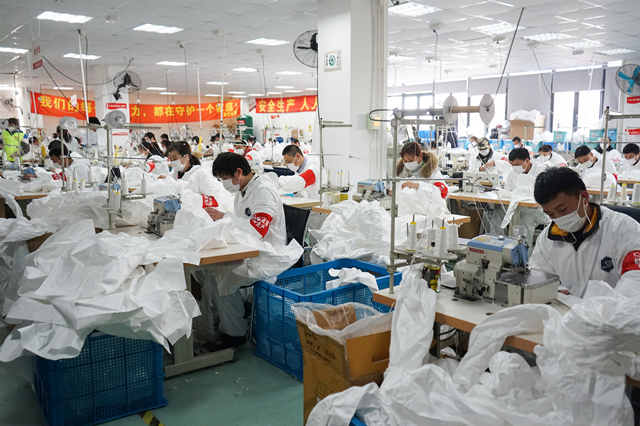 “我去年(nián)剛入了黨,看到這麽多醫護人員奮戰在抗疫線,很感動,所以就想為他們做些什麽,用實(shí)際行動向他們致敬。”一件防護服的流(liú)程大致是:裁原(yuán)料,縫紉,剪線頭,檢驗,貼商標,包裝,清(qīng)點,裝箱。當誌願者的天,顧祥舜分(fèn)配到的工作就是給防護服“剪線頭”。