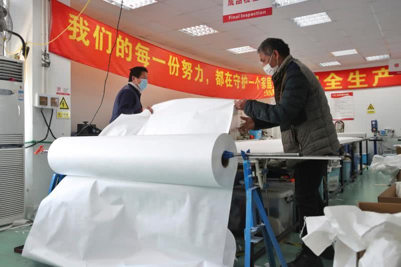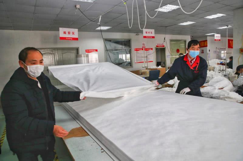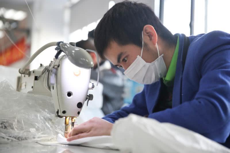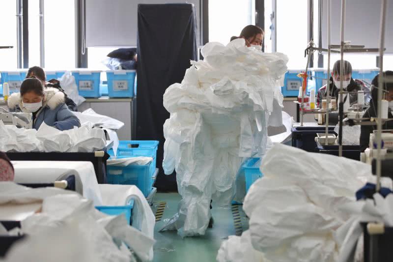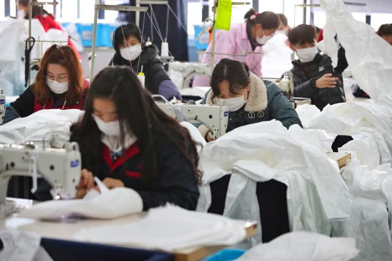 上海麻豆文化传媒精品观看安全防護(hù)用(yòng)品有限公司防護服生產車間經過了幾天的設備調整,50多(duō)個車位,70多名工人正在加(jiā)班加點趕製醫(yī)用防護服。